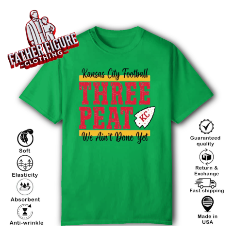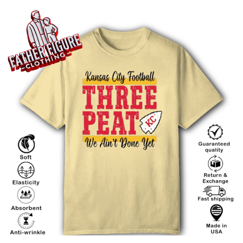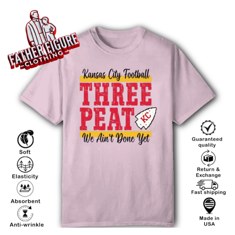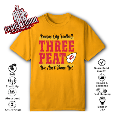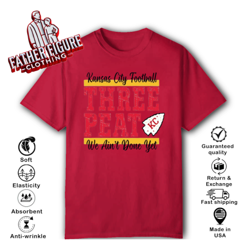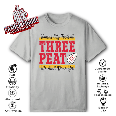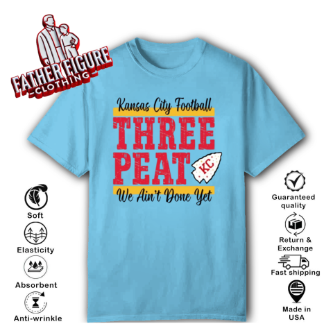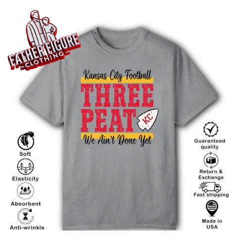 The “Chiefs Three-Peat” shirt was designed to celebrate the Kansas City Chiefs' pursuit of a historic third consecutive Super Bowl victory, a feat known as a “three-peat.” This term, coined during the late 1980s, refers to winning three consecutive championships in professional sports. Notably, NBA coach Pat Riley trademarked “three-peat” during his tenure with the Los Angeles Lakers, and he continues to hold rights to the phrase.