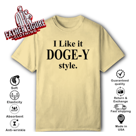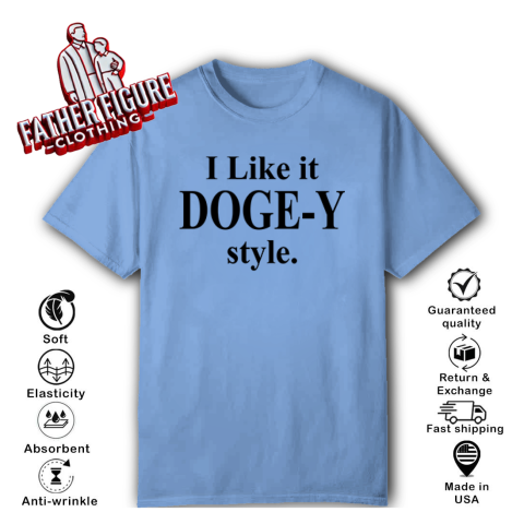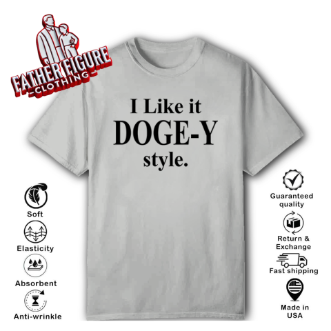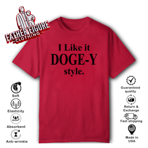The “I Like It DOGE-Y Style” t-shirt plays on a clever pun, sounding similar to “I Like It Doggy Style.” This witty design humorously references the Department of Government Efficiency (DOGE), a U.S. federal agency established by an executive order from President Donald Trump on January 20, 2025.