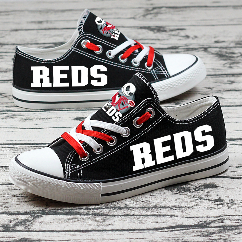 MLB Cincinnati Reds Halloween Jack Skellington Luminous Low Top T-DWAP008HY