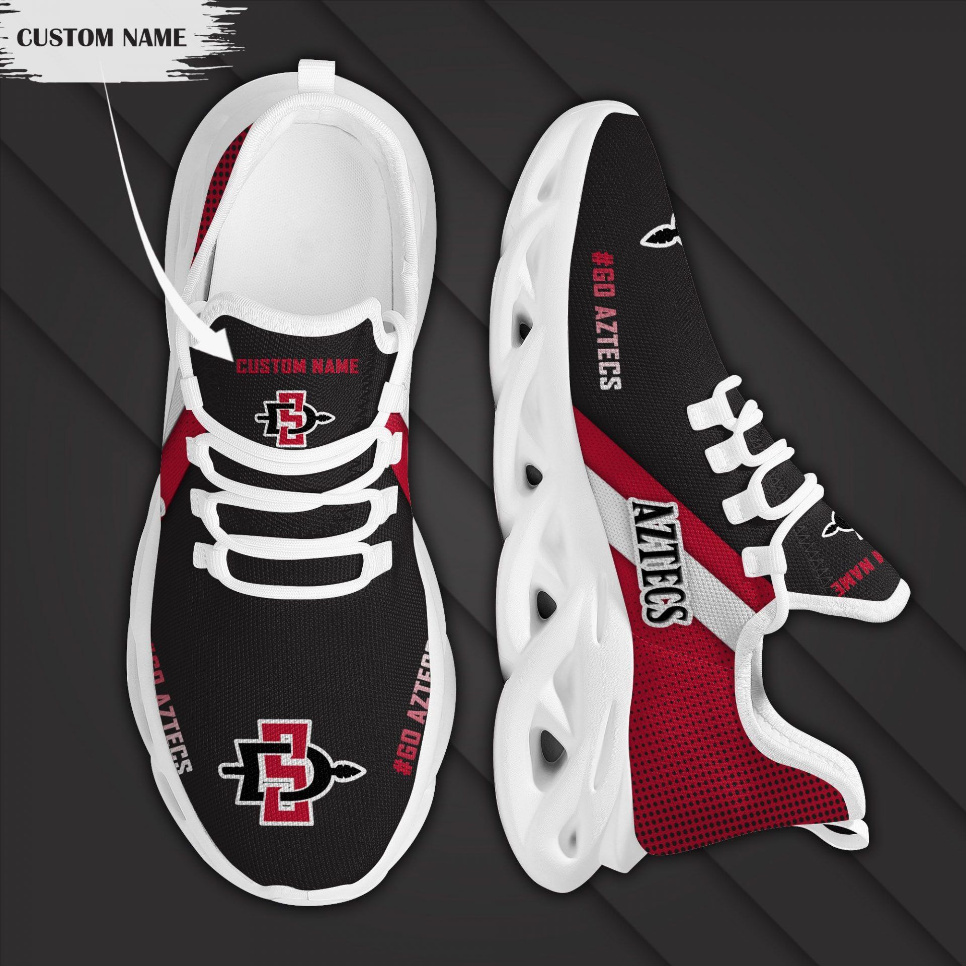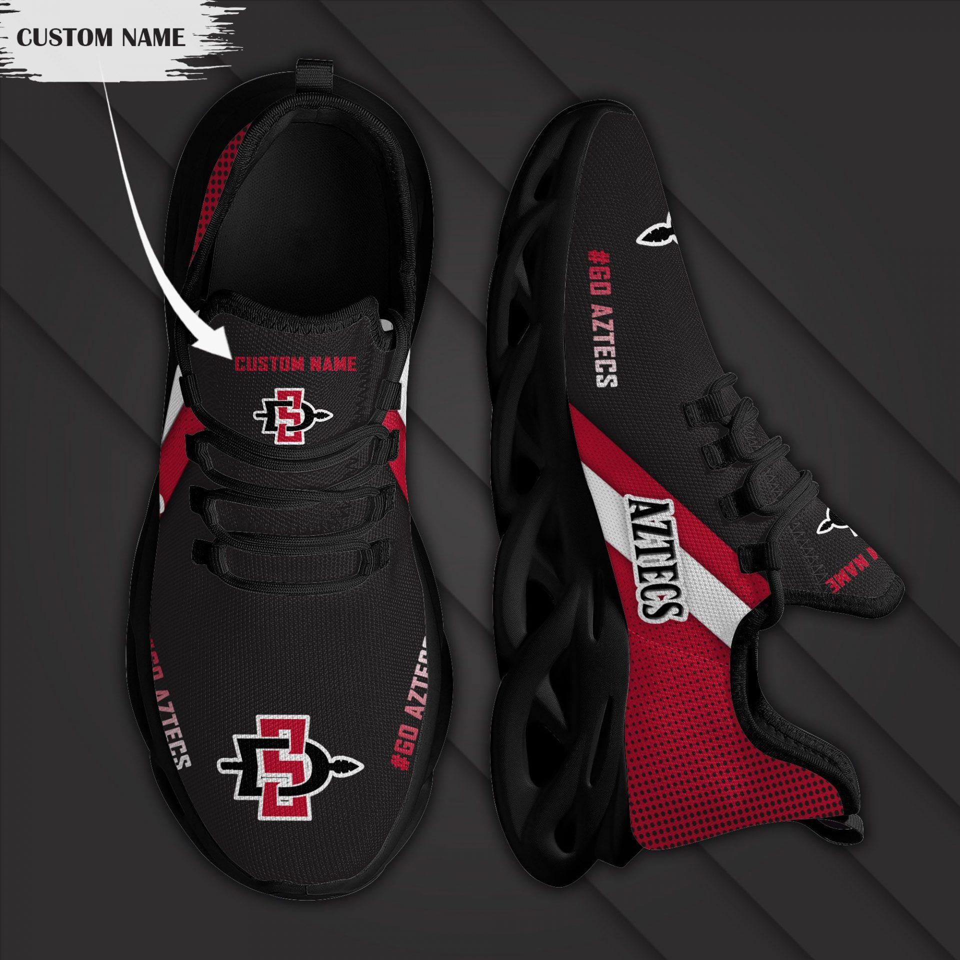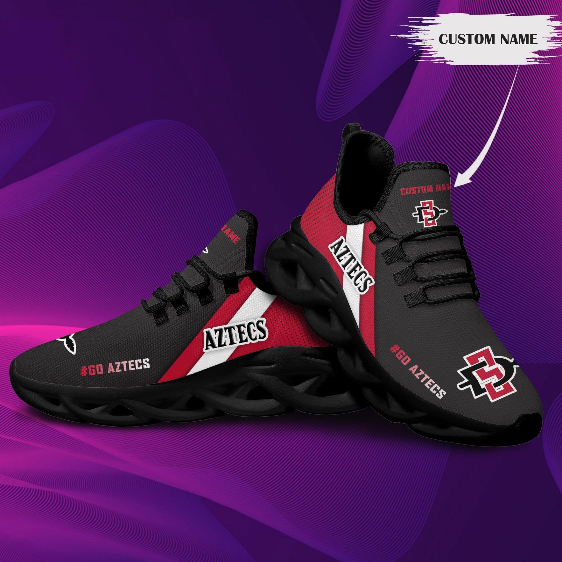 NCAA San Diego State Aztecs Custom Name Red Black Max Soul Shoes Custom for Men Women