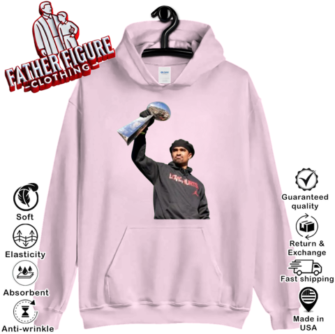 The “Super Bowl MVP Love Hurts” shirt is a commemorative apparel item celebrating Jalen Hurts' outstanding performance during Super Bowl LIX, where he led the Philadelphia Eagles to victory over the Kansas City Chiefs and earned the Most Valuable Player (MVP) award. The phrase “Love Hurts” is a clever play on words, combining the iconic “LOVE” sculpture synonymous with Philadelphia and Hurts' last name, symbolizing both the city's pride and the quarterback's resilience. This slogan was prominently featured in a Jordan Brand campaign honoring Hurts' achievement, with “Love, Hurts” signs displayed throughout Philadelphia during the Super Bowl parade.